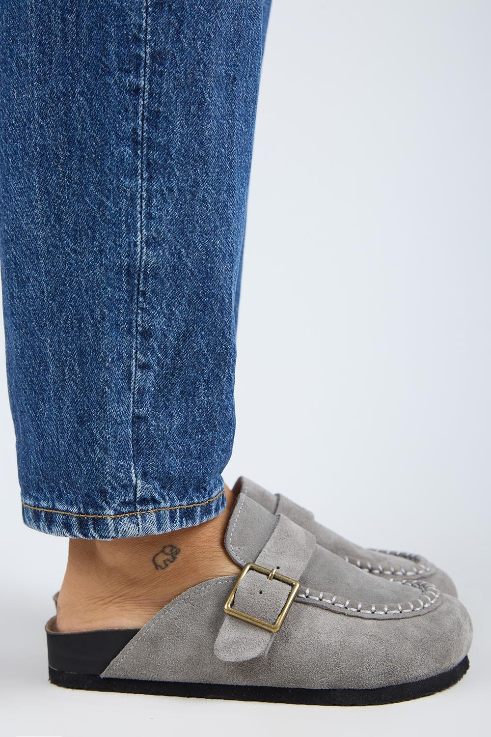 Manijero ARYA Premium MNR.017.03 Kadın Açık Gri Günlük Hakiki Deri Önü Kapalı Terlik (Arya-Gri-v1)